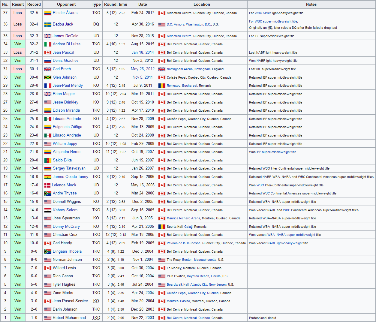Bute turned pro in 2003, moving to Canada, and won his first 30 matches as a professional. He won the IBF Super Middleweight title in 2007 by knocking out Alejandro Berrio in his 21st fight, and successfully defended it 9 times, until he was handed a heavy beating by Carl Froch in 2012, in Nottingham.
